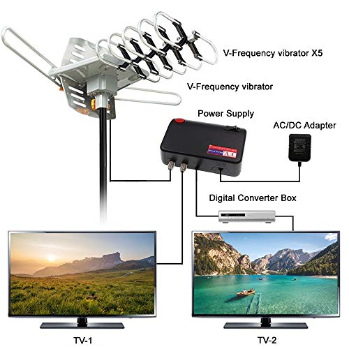 Wireless Remote Control On Installation Support 2 TV 2019 Version HDTV Antenna Amplified Digital Outdoor Antenna UHF/VHF 4K 1080P Channels 150 Miles Range-360 Degree Rotation Wireless Remote-Snap Audio & Video Accessories Electronics