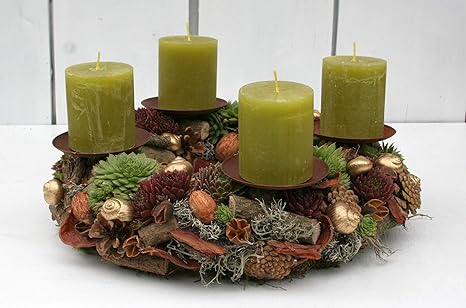 FRI-Collection Tischkranz Adventskranz Adventsgesteck frisch mit Sukkulenten 4 Kerzen 40 cm: Amazon.de: Küche & Haushalt