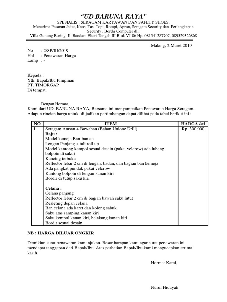 Contoh Surat Penawaran Harga Baju Seragam - Kumpulan Contoh Surat Dan